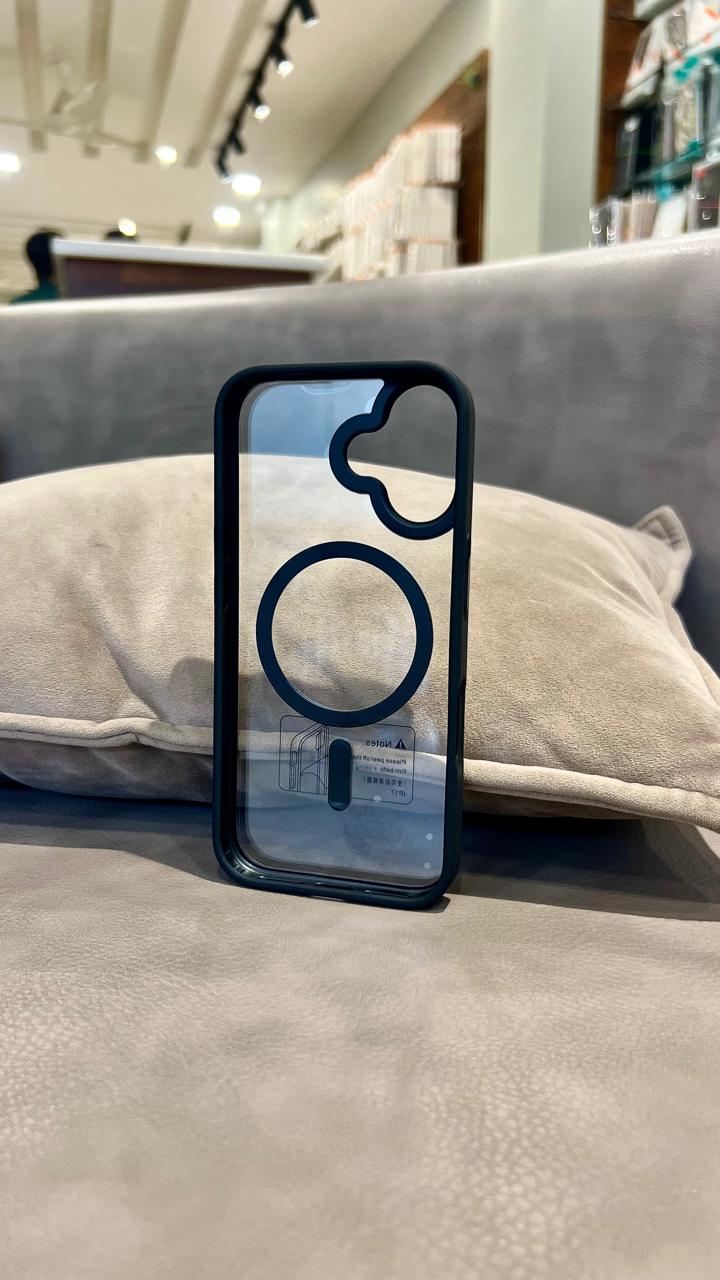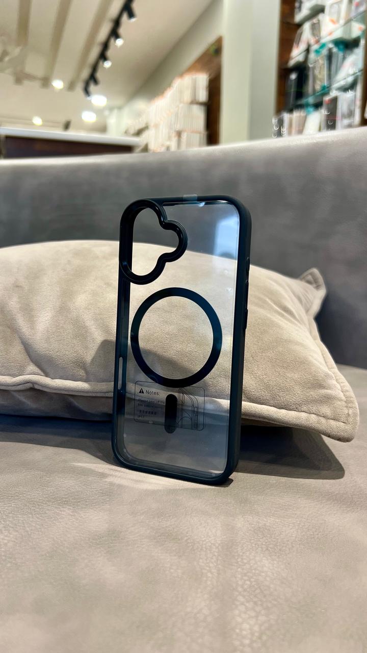 Give your iPhone a premium modern look with the Clear Black Edge MagSafe Case, combining transparency with bold black accents.